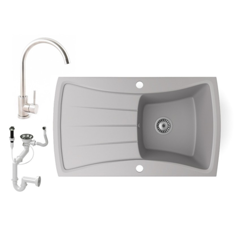 Nero Gránit mosogatótálca NERO Venezia + Inox-Line-2 csaptelep + dugókiemelő (szürke)