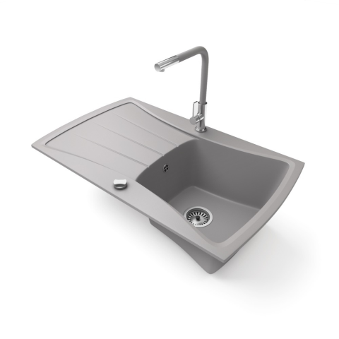 Nero Gránit mosogatótálca NERO Venezia + kihúzható fejes Linea csaptelep + dugókiemelő (szürke) mosogatótálca termékleírás