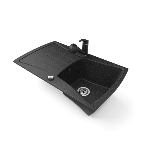 Nero Gránit mosogatótálca NERO Venezia + kihúzható zuhanyfejes Shower csaptelep + dugókiemelő (fekete) mosogatótálca termékleírás