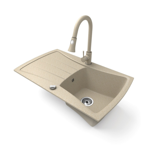 Nero Gránit mosogatótálca NERO Venezia + kihúzható zuhanyfejes Snake csaptelep + dugókiemelő (bézs) mosogatótálca termékleírás