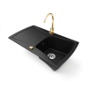 1 kép Nero Gránit mosogatótálca NERO Venezia + magasított arany csaptelep + dugókiemelő (matt fekete)
