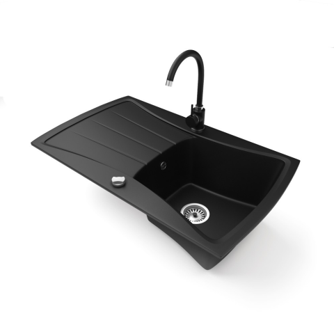 Nero Gránit mosogatótálca NERO Venezia + magasított csaptelep + dugókiemelő (matt fekete) mosogatótálca termékleírás