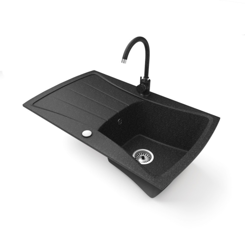 Teljes Nero Gránit mosogatótálca NERO Venezia + magasított csaptelep + szifon (fekete) termékleírás