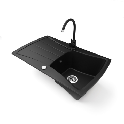 Nero Gránit mosogatótálca NERO Venezia + magasított csaptelep + szifon (matt fekete) mosogatótálca termékleírás