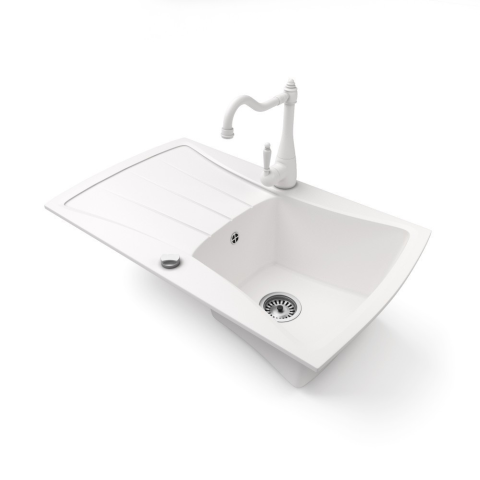 Nero Gránit mosogatótálca NERO Venezia + rusztikus csaptelep + dugókiemelő (fehér) mosogatótálca termékleírás