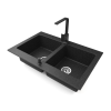 1 kép Nero Gránit mosogatótálca NERO Verso + Design csaptelep + adagoló (fekete)