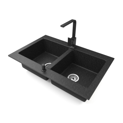Teljes Nero Gránit mosogatótálca NERO Verso + Design csaptelep + adagoló (fekete) termékleírás