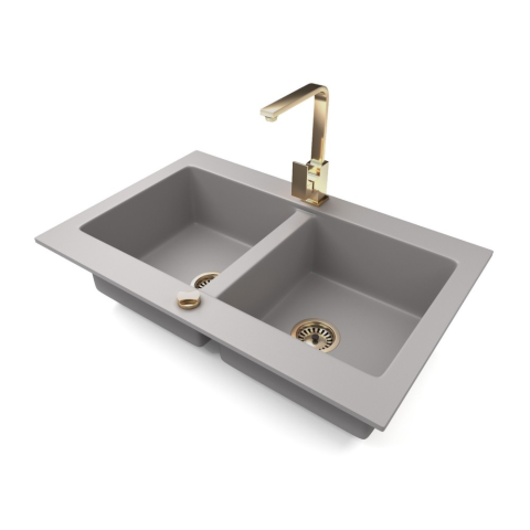 Nero Gránit mosogatótálca NERO Verso + Design Gold csaptelep + dugókiemelő (szürke) mosogatótálca termékleírás