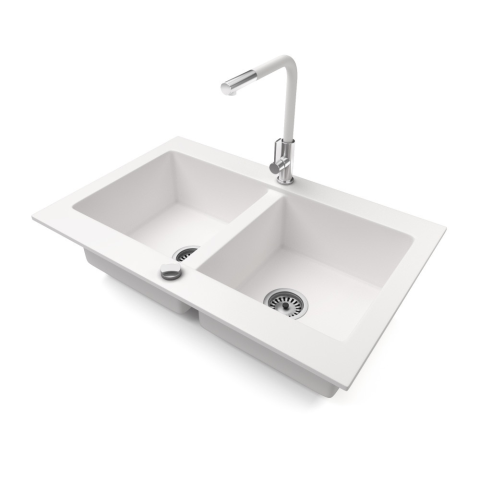 Nero Gránit mosogatótálca NERO Verso + kihúzható Linea csaptelep + dugókiemelő (fehér) mosogatótálca termékleírás