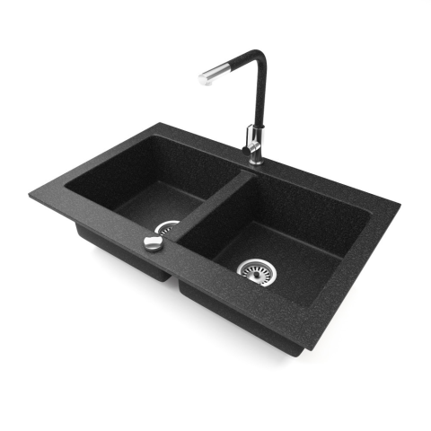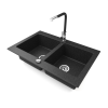 1 kép Nero Gránit mosogatótálca NERO Verso + kihúzható Linea csaptelep + dugókiemelő (fekete)
