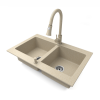 1 kép Nero Gránit mosogatótálca NERO Verso + kihúzható zuhanyfejes Snake csaptelep + adagoló (bézs)