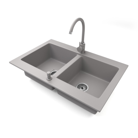 Nero Gránit mosogatótálca NERO Verso + magasított csaptelep + adagoló (szürke)