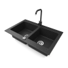 1 kép Nero Gránit mosogatótálca NERO Verso + Steel csaptelep + dugókiemelő (fekete)