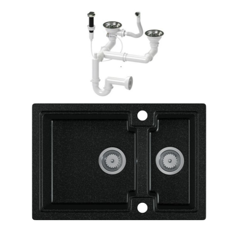 Teljes Nero Laneo Boston S63-43C Gránit Mosogató + dugóemelő (fekete) termékleírás