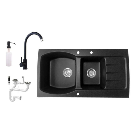 Teljes Nero Master Gránit Mosogató + Csaptelep + Dugóemelő + Adagoló termékleírás