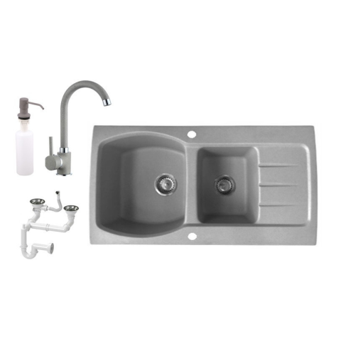 Nero Master Gránit Mosogató + Csaptelep + Dugóemelő + Adagoló (szürke) mosogatótálca termékleírás