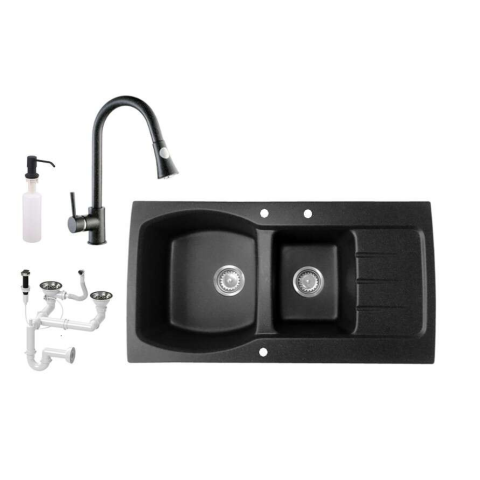 Teljes Nero Master Gránit Mosogató + Zuhanyfejes Csaptelep + Dugóemelő + Adagoló termékleírás