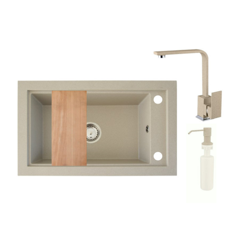 1 kép Nero Panama P686-427B Gránit Mosogató + Design Csap + Adagoló + Deszka + Szifon (bézs)