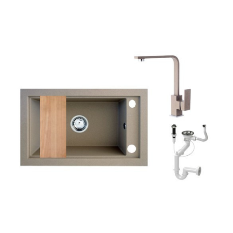 1 kép Nero Panama P686-427B Gránit Mosogató + Design Csap + Deszka + Dugóemelő (bézs)