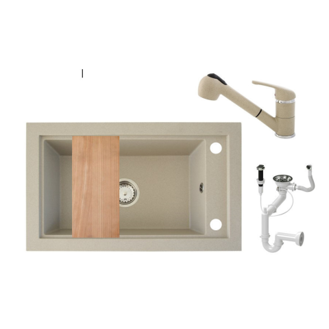 1 kép Nero Panama P686-427B Gránit Mosogató + Kihúzható Shower Csap + Dugóemelő + Deszka + Szifon (bézs)