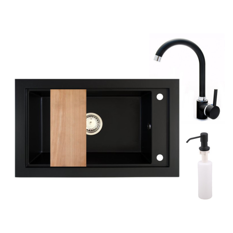 1 kép Nero Panama P686-427CM Gránit Mosogató + Csap + Adagoló + Deszka + Szifon (matt fekete)