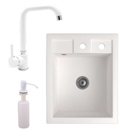 1 kép Nero Parma Gránit Mosogató + Steel csaptelep + adagoló + szifon, fehér