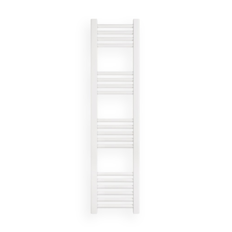 Törölközőszárító radiátor 30 x 120 cm-es méretben, fehér színben. Egyenes kivitel 4 szekcióra oszott csövekkel (5-5-4-4). A radiátor tartozéka a rögzítő konzolok és menetes dugók. A Nero Italia fürdőszobai radiátorok kimagasló gyártási minőségben előállít