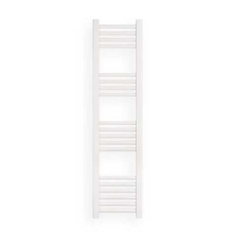 Törölközőszárító radiátor 30 x 120 cm-es méretben, fehér színben. Egyenes kivitel 4 szekcióra oszott csövekkel (5-5-4-4). A radiátor tartozéka a rögzítő konzolok és menetes dugók. A Nero Italia fürdőszobai radiátorok kimagasló gyártási minőségben előállít