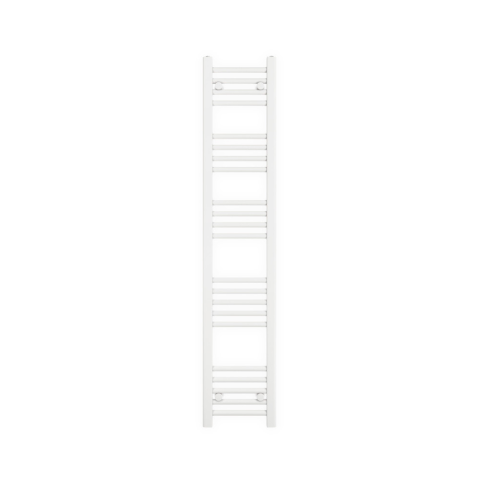 Törölközőszárító radiátor 30 x 150 cm-es méretben, fehér színben. Egyenes kivitel 5 szekcióra osztott csövekkel. A radiátor tartozéka a rögzítő konzolok és menetes dugók. A Nero Italia fürdőszobai radiátorok kimagasló gyártási minőségben előállított termé