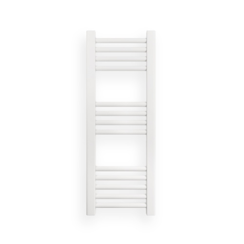 Törölközőszárító radiátor 30 x 80 cm-es méretben, fehér színben. Egyenes kivitel 3 szekcióra osztott csövekkel. A radiátor tartozéka a 3 db rögzítő konzol és a menetes dugók. Működtethető elektromos fűtőbetéttel is. A Nero Italia fürdőszobai radiátorok ki