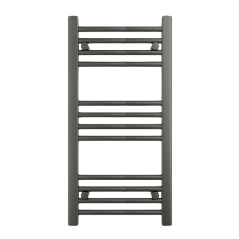 Törölközőszárító radiátor 40 x 80 cm-es méretben, gunmetal (grafitszürke) színben. A radiátor tartozéka a 3 db rögzítő konzol és a menetes dugók. A Nero Italia fürdőszobai radiátorok kimagasló gyártási minőségben előállított termékek, első osztályú acél f