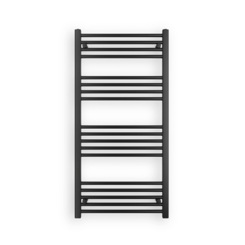 Törölközőszárító radiátor 60 x 120 cm-es méretben, fekete színben. Egyenes kivitel 4 szekcióra osztott csövekkel (5-5-4-4). A radiátor tartozéka a 3 db rögzítő konzol és a menetes dugók. A Nero Italia fürdőszobai radiátorok kimagasló gyártási minőségben e