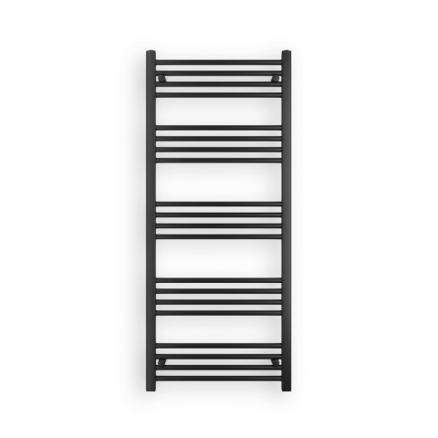 Törölközőszárító radiátor 60 x 140 cm-es méretben, fekete színben. Egyenes kivitel 5 szekcióra osztott csövekkel (5x4). A radiátor tartozéka a 3 db rögzítő konzol és a menetes dugók. A Nero Italia fürdőszobai radiátorok kimagasló gyártási minőségben előál
