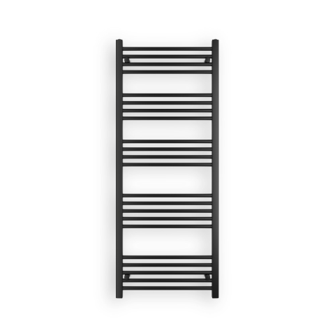 Törölközőszárító radiátor 60 x 150 cm-es méretben, fekete színben. Egyenes kivitel 5 szekcióra osztott csövekkel (5-5-4-4-4). A radiátor tartozéka a 3 db rögzítő konzol és a menetes dugók. A Nero Italia fürdőszobai radiátorok kimagasló gyártási minőségben