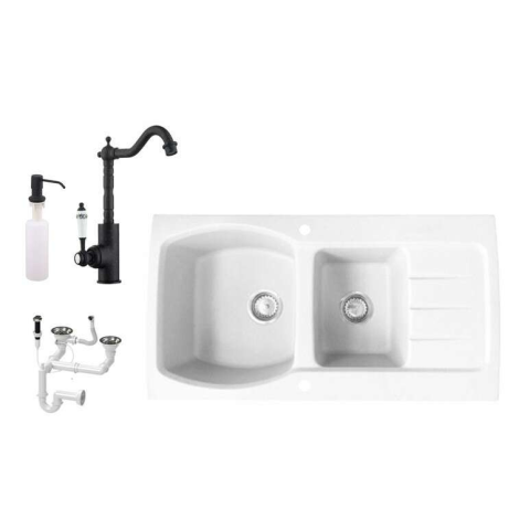 1 kép Nero W926 Gránit Mosogató + Rusztikus Csaptelep + Dugóemelő + Adagoló