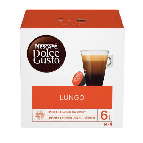 Kávékapszula, 16 db, NESCAFÉ DOLCE GUSTO Caffé Lungo „Dolce Gusto®” kapszula 100%-ig eredeti őrölt – pörkölt Arabica és Robusta kávékeverék minden eszpresszó kapszulában kedvencek a család minden tagjának, hideg és meleg italok télen – nyáron Íze