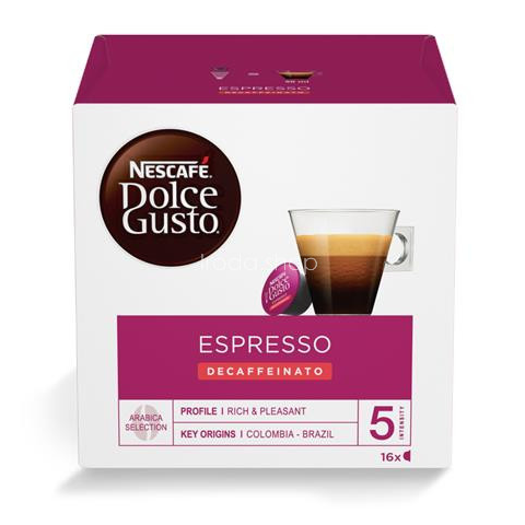 Kávékapszula, 16x6 g, NESCAFÉ DOLCE GUSTO Espresso, koffeinmentes Dolce Gusto®” kapszula 100%-ig eredeti őrölt – pörkölt Arabica és Robusta kávékeverék minden eszpresszó kapszulában kedvencek a család minden tagjának, hideg és meleg italok télen – ny