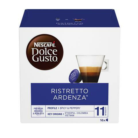 Kávékapszula, 16 db, NESCAFÉ Dolce Gusto Ristretto Ardenza (KHK477) 100%-ig eredeti őrölt – pörkölt Arabica és Robusta kávékeverék minden eszpresszó kapszulában kedvencek a család minden tagjának, hideg és meleg italok télen – nyáron ízesítés: Ristret