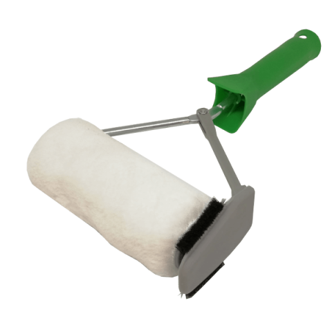Szőtt poliészter henger, acél nyél, műanyag fogantyú.
