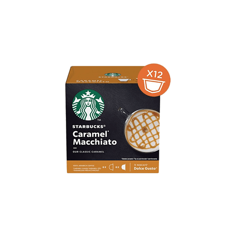 Fedezd fel a Starbucks® by Nescafé® Dolce Gusto® Caramel Macchiato kávékapszulákat! Ezt a kávét a már jól ismert és kedvelt Starbucks Caramel Macchiato ihlette, amely az eszpresszó, és a tej krémességével, valamint a karamell elragadó ízével kényeztet. Készítsd el kedvenc Starbucks® by Nescafé® Dolce Gusto® Caramel Macchiato kávédat otthon a Nescafé® Dolce Gusto® kapszulás kávéfőzőgépeddel. Egyszerű Elkészíteni Helyezd be először a fehér színű tejkap