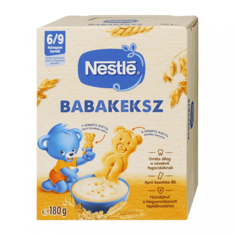 A Nestlé babakeksz finom és tápláló harapnivaló gyermeked számára. 4 értékes vitamint, kalciumot és vasat tartalmaz* *Az előírásoknak megfelelően minden tejes babakeksz tartalmaz B1-vitamint és kalciumot.