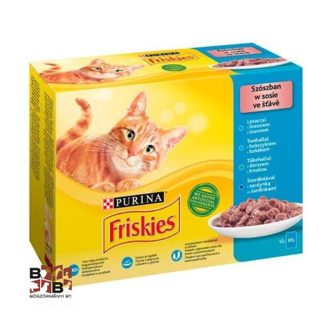 1 kép Nestlé Purina Friskies szószban lazac/tonhal/tőkehal/szardínia macskaeledel 12 x 85 g