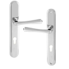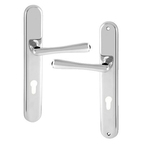 Biztonsági kilincspár acél betéttel, átmenő csavarral Kívülről furat nincs, a külső pajzs belülről van rögzítve. MABISZ minősítéssel Perfecto termék Külső sild acél pajzzsal van ellátva, ez véd a zártörés illetve zár megfúrása ellen. Felületek amelyekk
