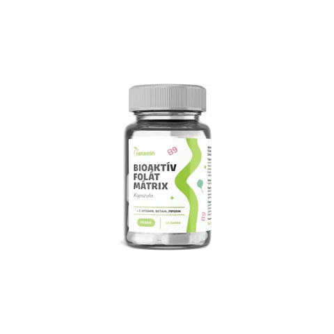 Bioaktív folát mátrix étrend-kiegészítő kapszula foláttal, C-vitaminnal, betainnal és feketebors-kivonattal.