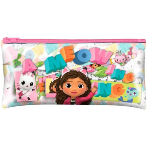 RAKTÁRRÓL AZONNAL! Gabby's Dollhouse, Gabi babaháza írószer szett Méret: 9,5x19 cm Tartalma: - 1 db tolltartó - 1 db vonalzó - 1 db radír - 1 db faragó - 1 db ceruza