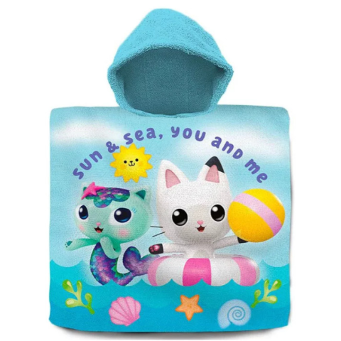 RAKTÁRRÓL AZONNAL! Gabby's Dollhouse, Gabi babaháza Sun and Sea strandtörölköző poncsó Anyaga: 100% pamut. Mérete: 60x120 cm