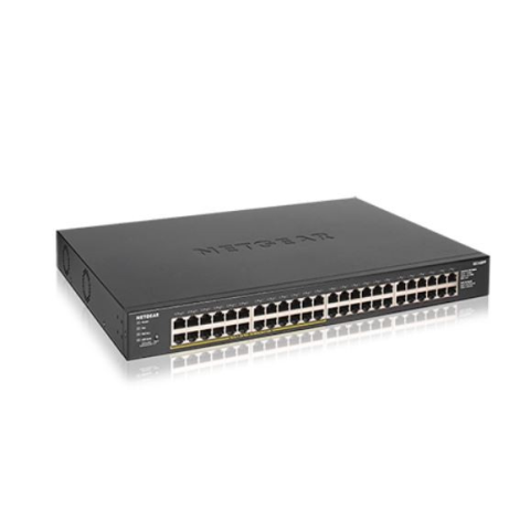 NETGEAR GS348PP. Kapcsoló típusa: Beállítást nem igénylő (unmanaged). Alapvető kapcsolási RJ-45 Ethernet portok típusa: Gigabit Ethernet (10/100/1000), Alapvető kapcsolási RJ-45 Ethernet portok száma: 48. Teljes kétoldalú. MAC-címtábla: 8000 bejegyzés(ek), Kapcsolási kapacitás: 96 Gbit/s. Hálózati szabvány: IEEE 802.1p, IEEE 802.3, IEEE 802.3ab, IEEE 802.3at, IEEE 802.3az, IEEE 802.3i, IEEE 802.3u. Ethernet-áramellátás (PoE) támogatása. Keretállvány