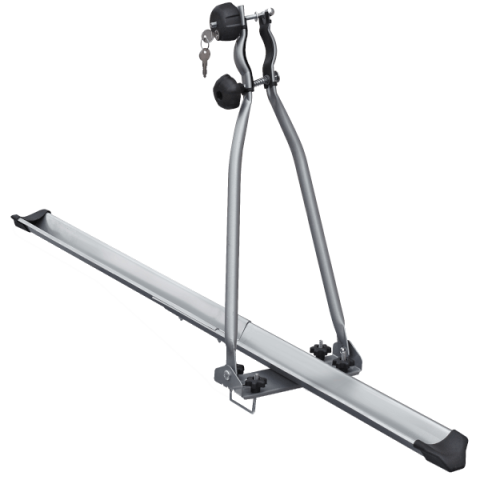 Kerékpárszállító autókhoz, tetőcsomagtartóra rögzíthető. Max. 1 db kerékpár szállítására. Max. teherbírás: 15 kg. Zárható.