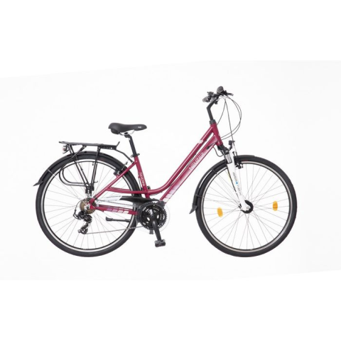 Alsó-középkategóriás, jó ár-érték arányú trekking kerékpár teljes városi/túra felszereléssel, agydinamós világítással, teleszkópos villával.