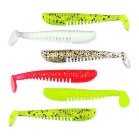 A lágy, de igen tartós szilikon anyag kombinálva a test bordázatával finom rezgéseket kelt a bevontatáskor, ami a passzív ragadozókat is kapásra ingerli.